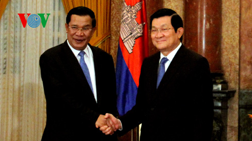 (VOVworld)-访越期间,洪森与越南政府总理阮晋勇举行会谈,会见国会主席阮生雄,礼节性拜会越共中央总书记阮富仲和国家主席张晋创。