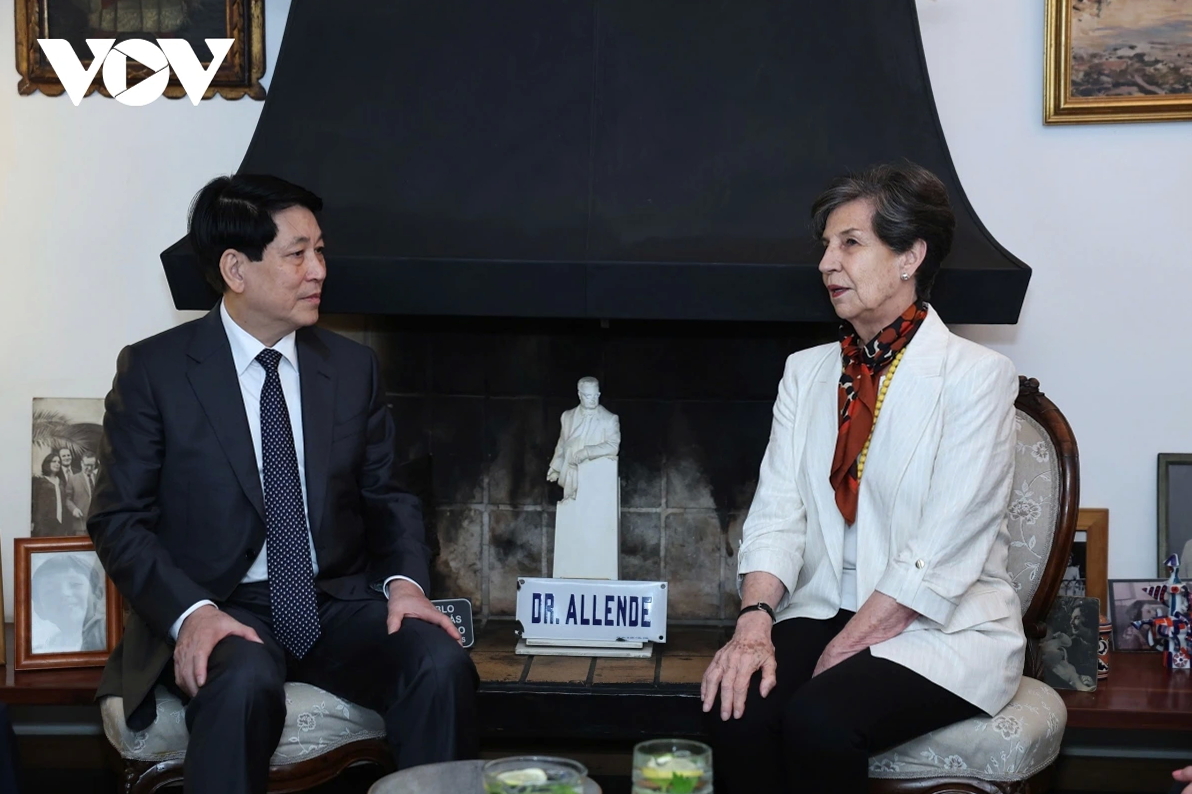 秘鲁政府部长和多位外交部官员在豪尔赫·查韦斯机场迎接越南国家主席梁强和越南高级代表团。越南驻巴西兼驻秘鲁大使裴文毅及越南大使馆干部和工作人员前来迎接。