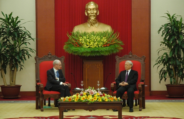 (VOVworld) - 越共中央总书记阮富仲31日下午会见来访的欧洲理事会主席范龙佩。