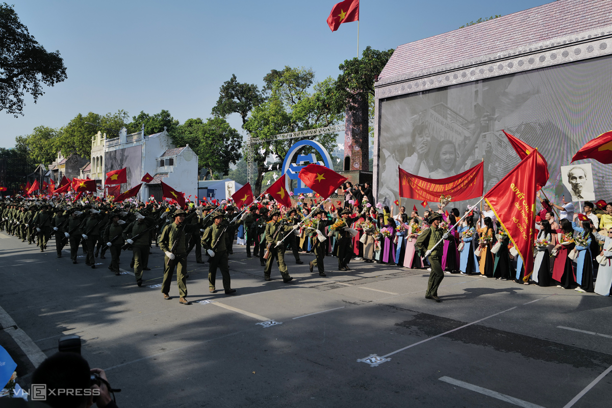 男:1954年,当军队接管首都时,我才17岁。看到军队和战士们,我非常高兴,拿起相机拍照。不只是我,整个河内从前一天就兴奋不已。军队进入首都时,整个城市爆发欢呼。街道上挤满了人。