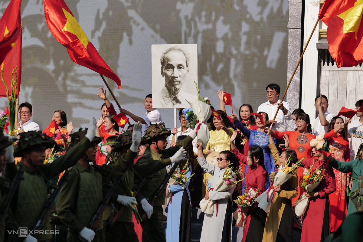 国家档案馆第一中心主任陈氏梅香:“我们选择以3维空间来再现解放当天的烟火以及令人振奋的气氛,以表达民族的豪迈,特别是在这种气氛中的河内人”。