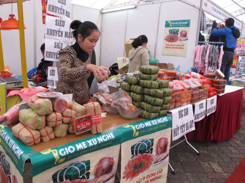 同一天,2015年春节年货展销会在越南讲武展会中心举行。500家企业设近900个展位参展,展示很多受消费者欢迎的产品。