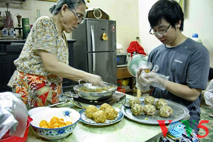 (VOVworld)- 中秋节来临,河内人就纷纷准备做月饼了。这是越南人民一项优良的文化传统,也是阖家团圆的日子。近年来,不少家庭喜欢上了一家人自己做月饼。家住河内三十六条古街之一—冯兴路的紫薇老大娘,每年中秋都会和孙儿一起做月饼。