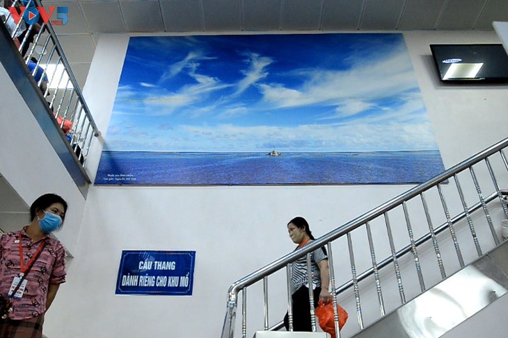 药师阮文体说:“来到这里,我看到了非常好看的照片,这让人想起了民族的海洋岛屿主权。去医院看病,还可以看到如此漂亮的照片,这种环境真是太棒了。”