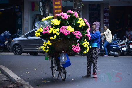 (VOVworld)- 每年四月,河内天气转暖,百花齐放。玫瑰、蔷薇、万寿菊、簕杜鹃、黄色金童花等给河内街头增添了秀色。
