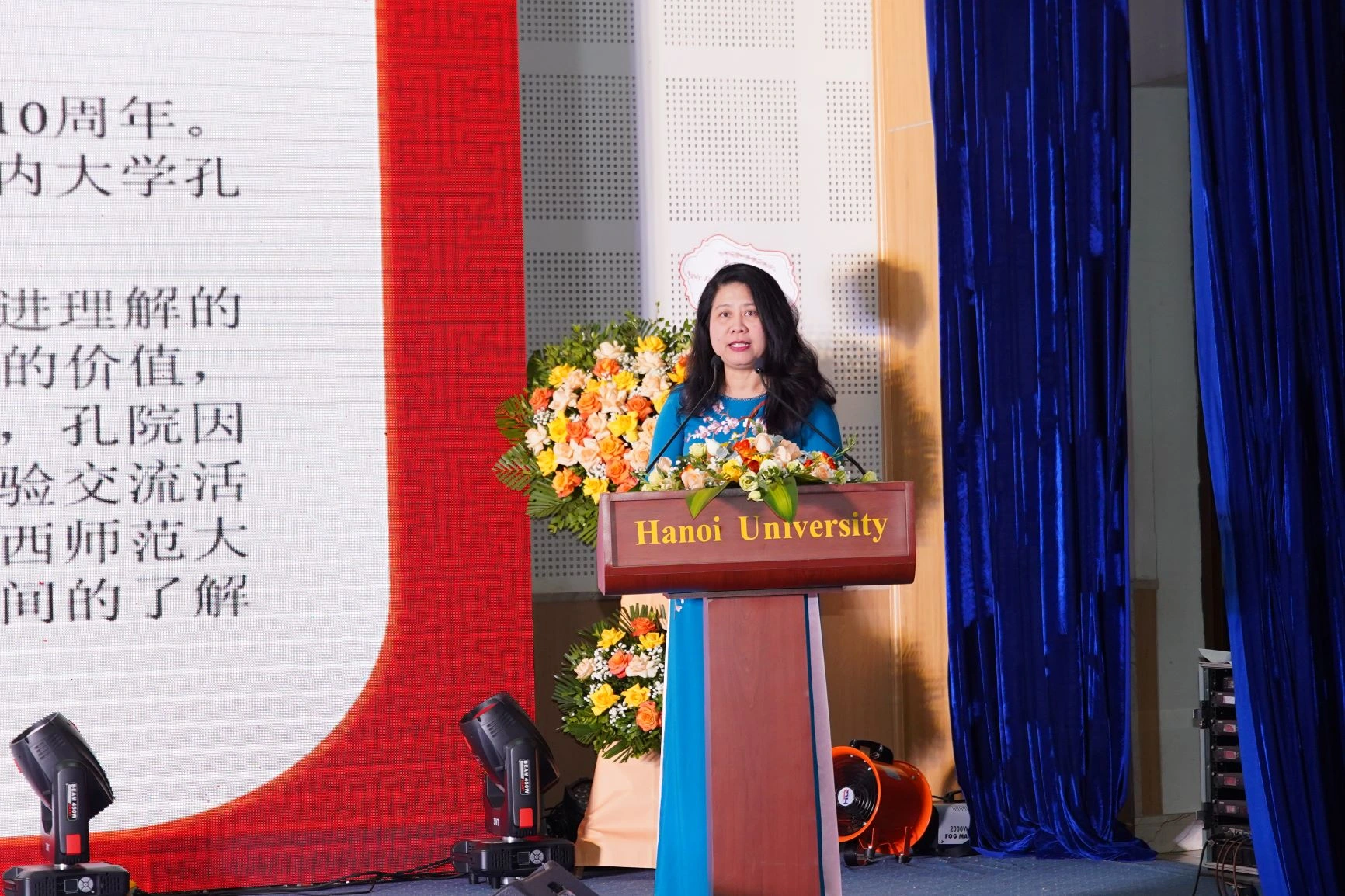 河内大学副校长阮氏菊芳女士在庆典仪式上致辞 |