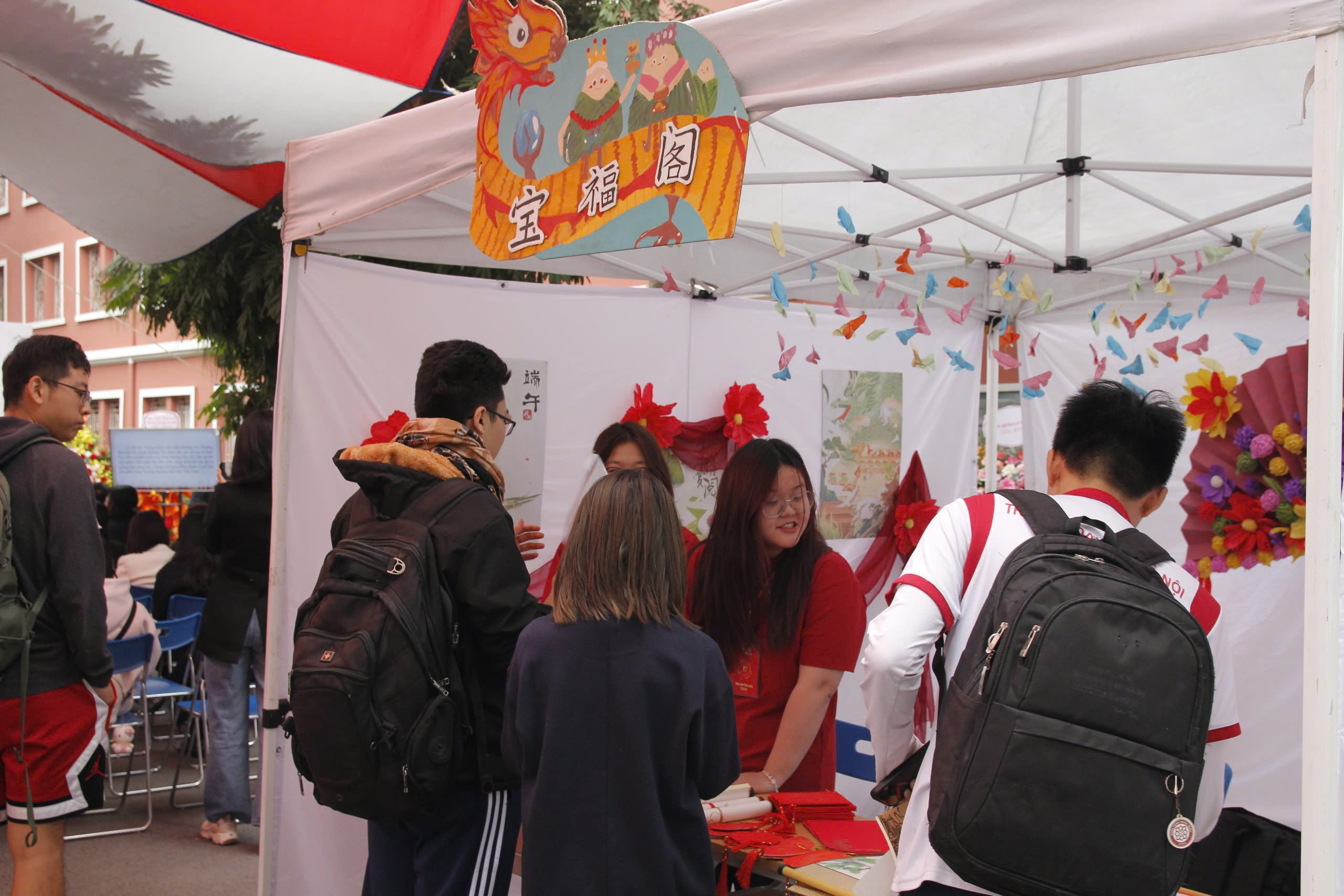 庆典上还举行了文艺交流活动以及书法、试穿汉服、越南奥黛、射箭、飞镖、制作扇子、美食、茶道等文化美食交流活动。