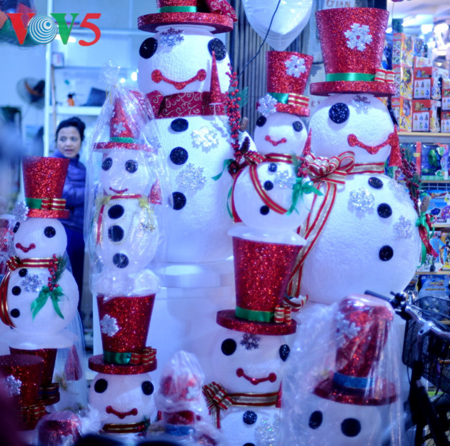 这几天,河内各条街道摆满了各式各样的圣诞装饰品。