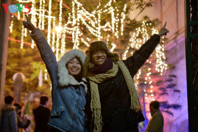 (VOVWORLD) - 圣诞节来了。在河内多条街道特别是古街,游客在寒冷的天气里观赏彩灯。这一切给人带来喜悦的气氛。