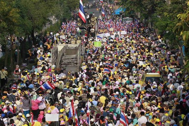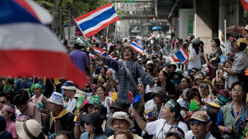(VOV)-  据本台驻泰国记者春山报道,反政府抗议示威游行仍在继续进行。示威领导人政府前副总理素贴宣布,只有英拉总理在三天之内辞职,他们才会结束示威。此前,英拉10日宣布按照宪法第181条解散国会下议院,自己担任临时总理,并遵照泰国国王的御令于明年2月2日举行选举。