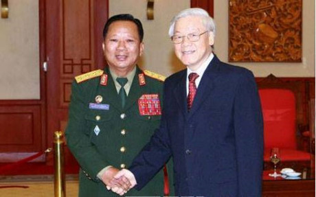 越共中央总书记阮富仲会见老挝国防部长占沙蒙•占雅拉