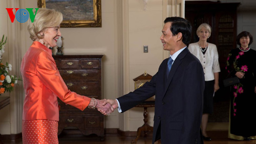 (VOVworld)-越南驻澳大利亚大使梁青毅3月25日在澳议会总部礼节性拜会澳大利亚参议院议长霍格。 霍格在会见时对两国国会的有效合作予以高度评价,特别是在分享立法经验、加强议员与选民、国会委员会与各组织和社会团体的关系方面,并希望两国立法机关加强互访。 梁青毅强调,将在任期内做出不懈努力,继续为推动越澳关系进一步发展做出贡献。(完)