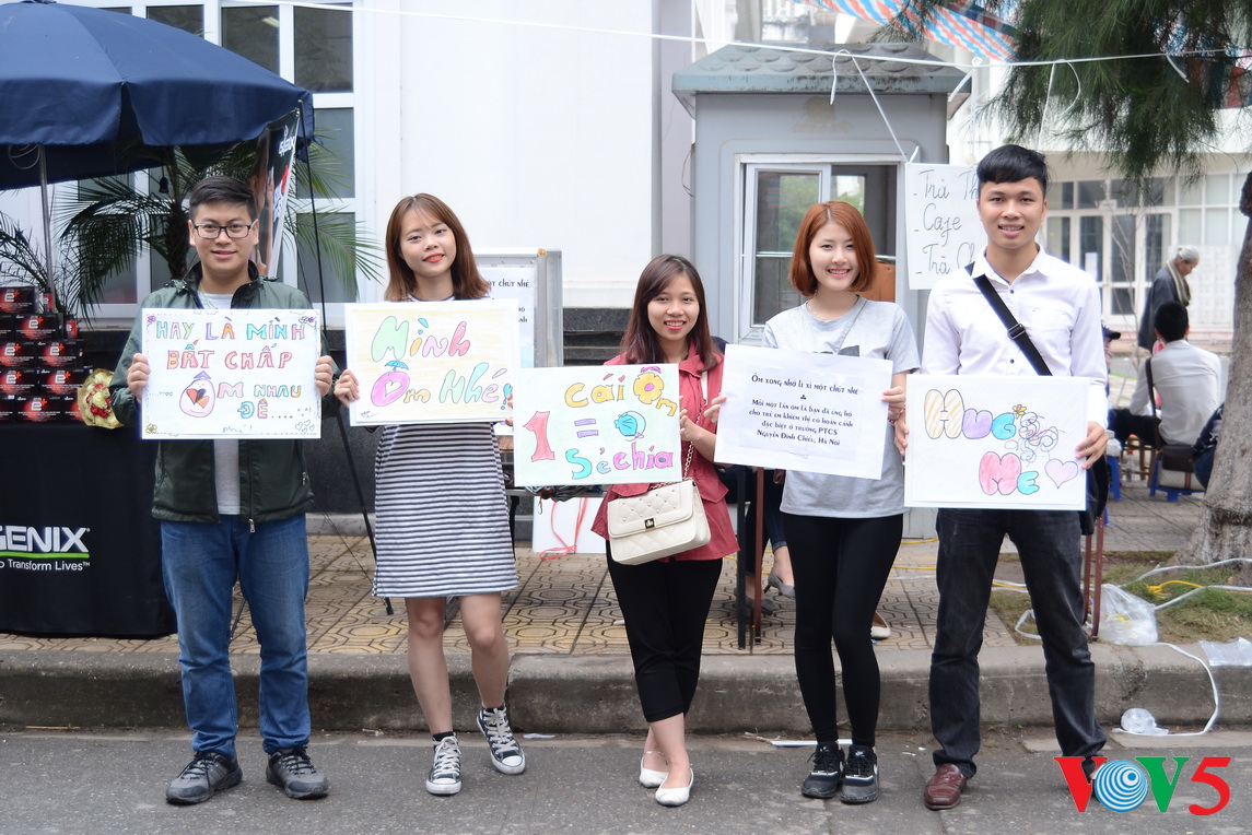 为阮廷沼盲童学校捐款的“收费拥抱”慈善活动。(完)