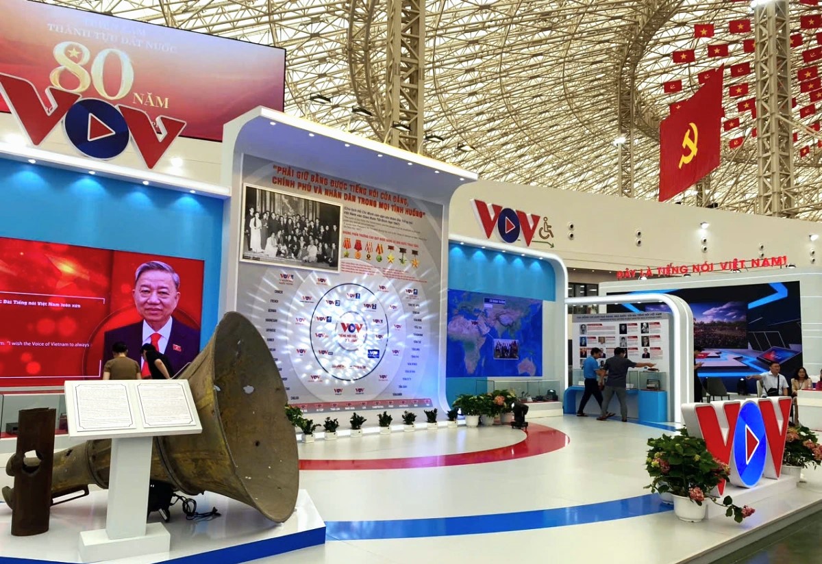 展览总面积超过25万平方米,全国34个省市、28个部门以及最具代表性的企业共设230个展位,展示越南80年来取得的杰出成就。越南之声的展位以“越南之声伴随祖国80年”为主题,通过各种资料和实物重现历史。展位采用线式布局,连接过去、现在和未来,帮助观众从多个视角了解本台的发展历程。