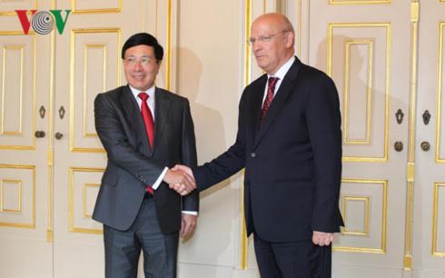 王庭惠在各场会晤和会谈上强调,越南一向重视与葡萄牙的合作关系。陪同他访问葡萄牙的有越南一流集团领导人,旨在推动与葡萄牙的经贸合作关系。