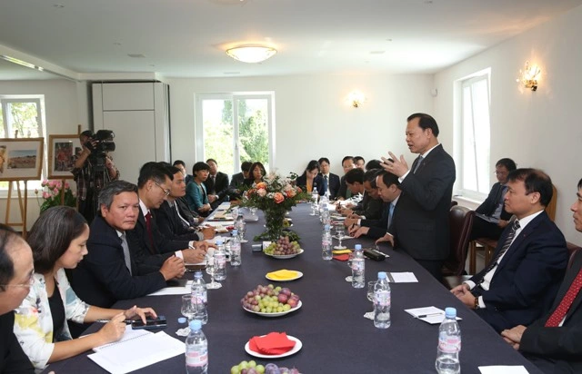 (VOVworld)- 正在瑞士进行工作访问的越南政府副总理武文宁9月16日同瑞士副总统兼经济、教育与创新部长约翰·施耐德-阿曼举行会谈。