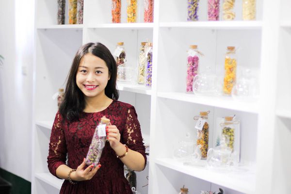 也是以茶创业,但1994年出生的姑娘梅美玲却有着不一样的创业故事。美玲是越南很多茶馆、蛋糕店、咖啡店热卖的有机花茶品牌的老板。梅美玲在获得多项全国比赛金牌后宣布暂停体育舞蹈事业,开始令人钦佩的创业。她说:“我很幸运能去很多国家旅游。在亚洲一些国家,我经常看到他们用餐时有饮茶的习惯,而日本、韩国等国常饮用花茶。啜一口花茶,我觉得很惊讶因为花看起来很美却又非常香甜,具有很多功效。我就想一个问题:为什么这种茶在越南却不受欢迎。刚创业时,我从一些国家进口花茶来卖。后来,越南客户喜欢上了这种茶,很支持我。我就摸索研究出这种花茶的生产技术。”