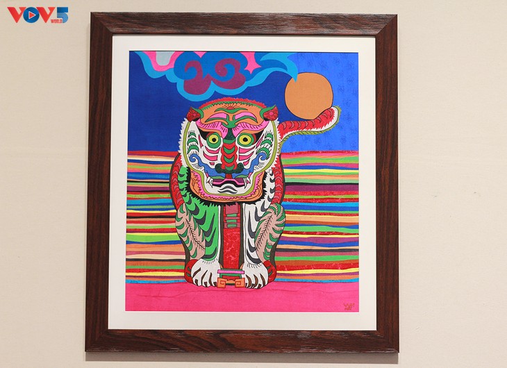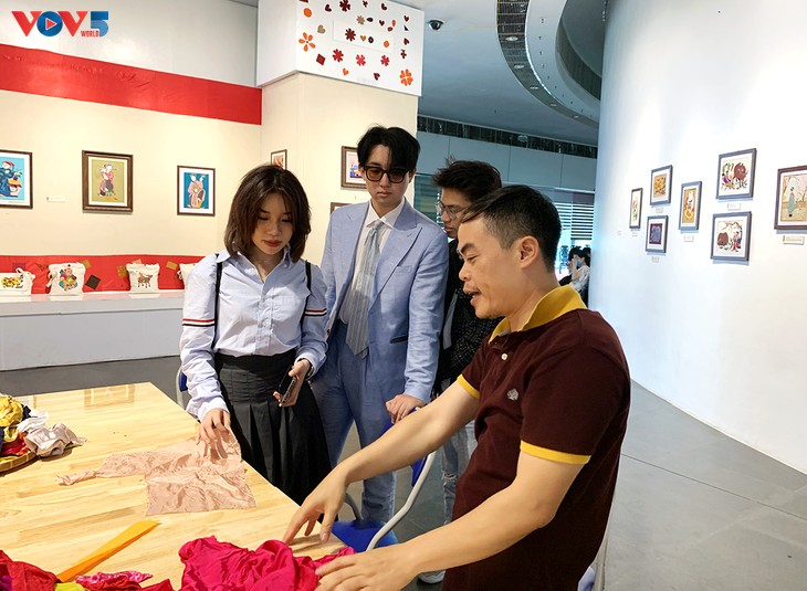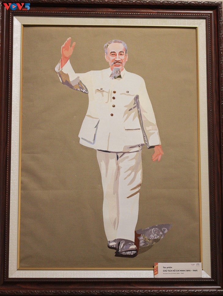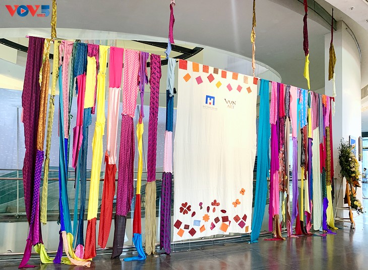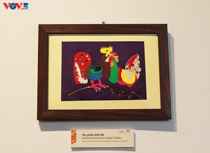 值得一提的是,这些作品是河内万福丝绸村“碎片艺术”(Vụn Art)合作社的残疾人以其灵巧的双手将一个个丝绸碎片拼成的。 |