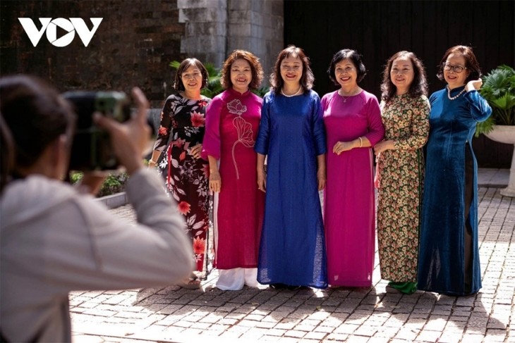 无论年龄大小,只要穿上传统奥黛,女性都会显得温柔而又妩媚。图片来源:越南之声,摄影:垂庄。 |