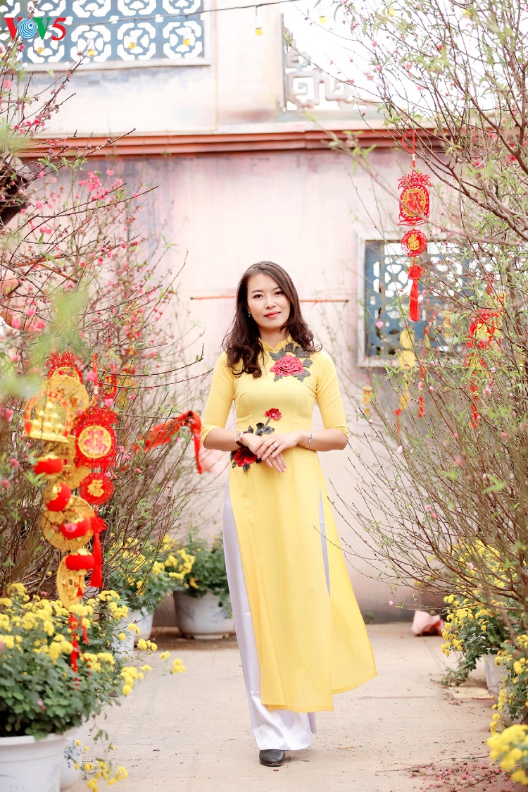 FPT大学教师翠娥表示,每年春节前,她都与闺蜜拍“奥黛”照,以留住青春的美好时光。 |