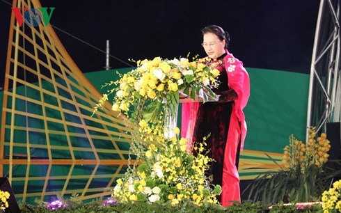 阮氏金银在开幕式上致辞时祝贺林同省及大叻市的“大叻花卉——祥和的土地奇妙的结晶”品牌正式得到认可,同时希望林同省继续有效开发独特潜力和优势,促进本省及大叻市继续发展。