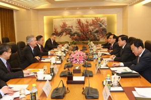 (VOVworld)- 在第六轮中美战略与经济对话举行前夕,第四次中美战略安全对话8日在北京举行。中国外交部副部长张业遂和美国常务副国务卿伯恩斯共同主持对话。 两国外交和军事高官在会上就全面战略安全等共同关心的问题坦率、建设性地交换意见。双方一致同意维持与推进两国战略与经济对话机制,旨在增进互信,加强合作。