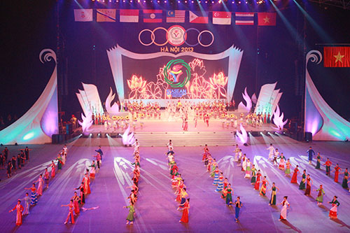 (VOVworld)-2013年第5届东南亚学生运动会开幕式23日在河内隆重举行,展示了东盟各成员国、各民族绚丽多资的文化