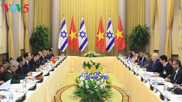 (VOVworld)- 欢迎以色列总统鲁文•瑞夫林访越的正式仪式3月20日在主席府隆重举行。欢迎仪式结束后,越南国家主席陈大光同瑞夫林总统举行会谈,就推动双边合作的多项措施及两国共同关心的国际和地区问题交换意见。