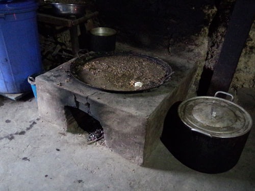 屋子左边的大灶,是从屋外大门往里看到的第一个灶塘。按瑶族的说法,这个炉灶叫做“Tồm dố”,用黏土堆成,用来煮大锅,比如煮猪糠、酿酒、煮洗澡水等。第二个设在厢房,稍小些,也用土堆成,叫做“Dồ ton”,用来煮饭做菜,服务日常生活。