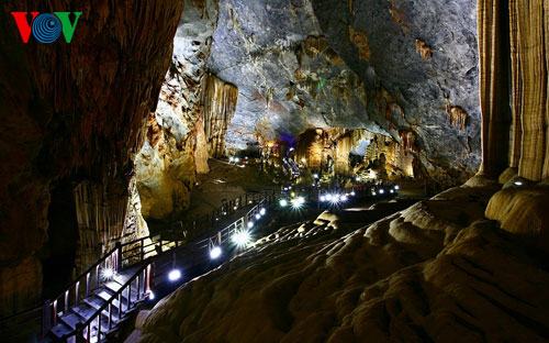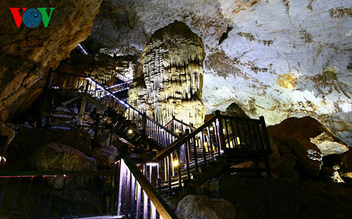 (VOVworld)- 从广平省风芽洞沿西长山向北走25公里就到了被视为地下天堂的天堂洞。天堂洞于2005年被一名当地居民发现,洞中景观特别美丽,后来,在国家投资开发后,天堂洞从2010年9月开始对外开放。