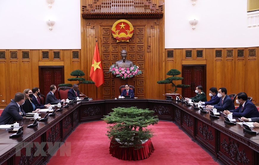 奥斯汀表示,美国今后将继续与越南进行新冠肺炎疫苗相关合作,同时向越南防疫努力提供援助。美国也将与越南加强克服战争后果合作,协助越南处理橙剂污染。奥斯汀也建议双方研究把两国关系提升至战略伙伴水平的可能。