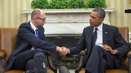 奥巴马与亚采纽克的首次会见显示了美国对乌克兰过渡政府的支持。会见中,奥巴马称,如果俄方继续推动克里米亚半岛脱离乌克兰的全民公决,美国及其盟国必将迫使俄方付出代价。