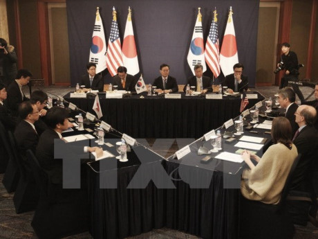 (VOVworld)-在朝鲜半岛紧张局势持续,以及有迹象显示朝鲜即将进行第五次核试验的背景下,美国、日本和韩国计划于4月19日在首尔举行三方高层会谈。