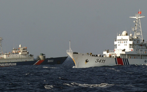 | 中国船只阻扰越南执法船作业。图片来源:AFP |