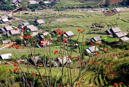 从沙坝镇出发,沿着一条唯一路线,穿过隧道,再过一座山就到了芒花山谷。面积约八平方公里的芒花山谷海拔一千米,横跨老柴(lao chai)、左万(ta van)、候涛(hau thao)、史帕(su pa)、左频(ta pin)、版湖(ban ho)六乡,坐落在黄连山山脉丛山之中。