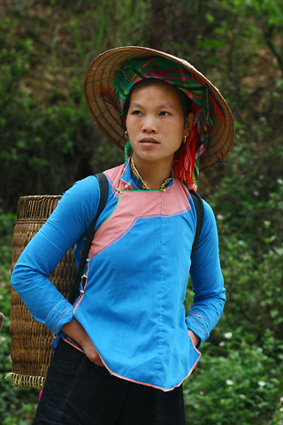 她说:“以前也是这么穿的。我奶奶说,上衣一般是蓝色、红色。年轻的穿红色,年纪大的穿蓝色和黑色。我们喜欢这些颜色。我的衣服我自己买,或买布让孩子给做。我们有缝纫机自己做。以前,要用手缝,现在用缝纫机了。”
