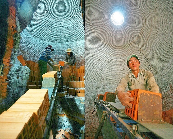 八十年代是“红砖王国”的黄金时期。全村约有1000个砖瓦厂、3000个窑炉。2000年后,由于消费者喜好改变,而传统生产方式成本高,“红砖王国”开始“失宠”。目前,约有1000个窑炉还能维持活动。图片来源:《thamhiemmekong.com》。 |
