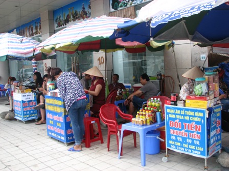 口岸前随处可见这样的外汇兑换和通行证办理的摊子。据一名摊主说,本地人只要花上21万越南盾,外地人26万越南盾即可拿到前往中国的通行证,并可以在中国停留三天三夜
