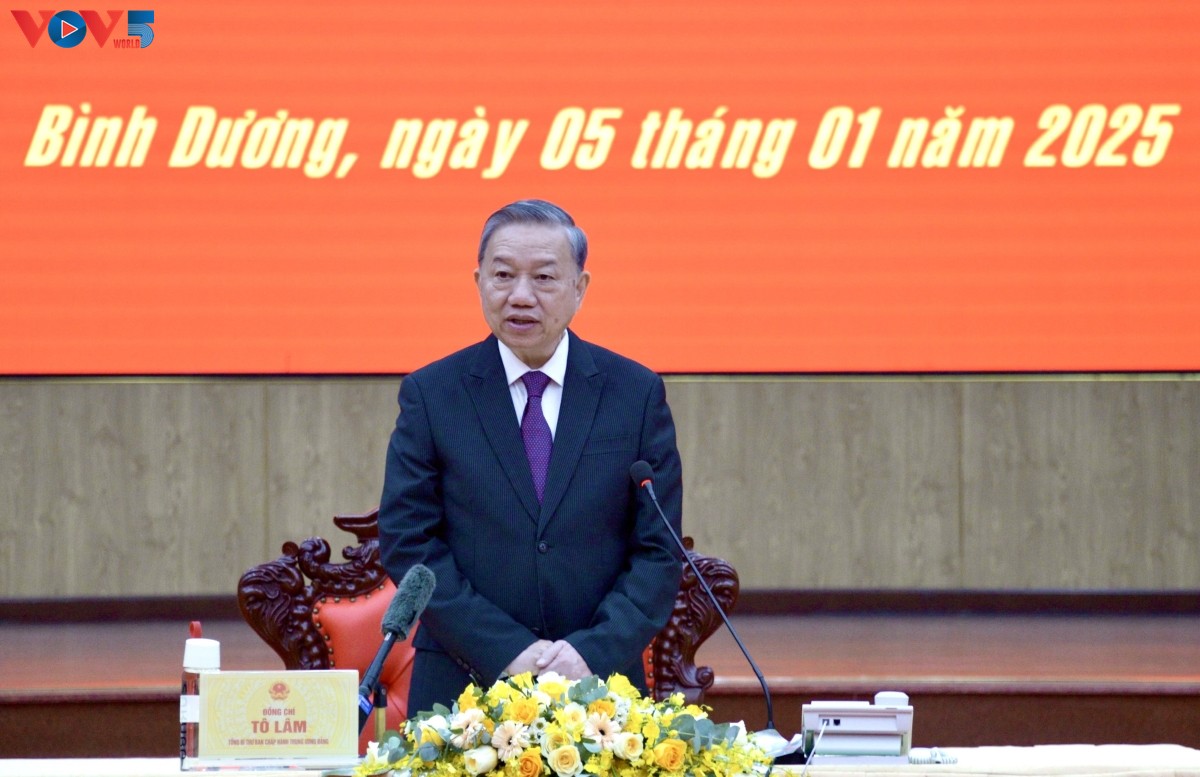 (VOVWORLD) - 1月5日上午,越共中央总书记、中央军委书记苏林视察平阳省军事指挥部,与指挥部举行工作会议。
