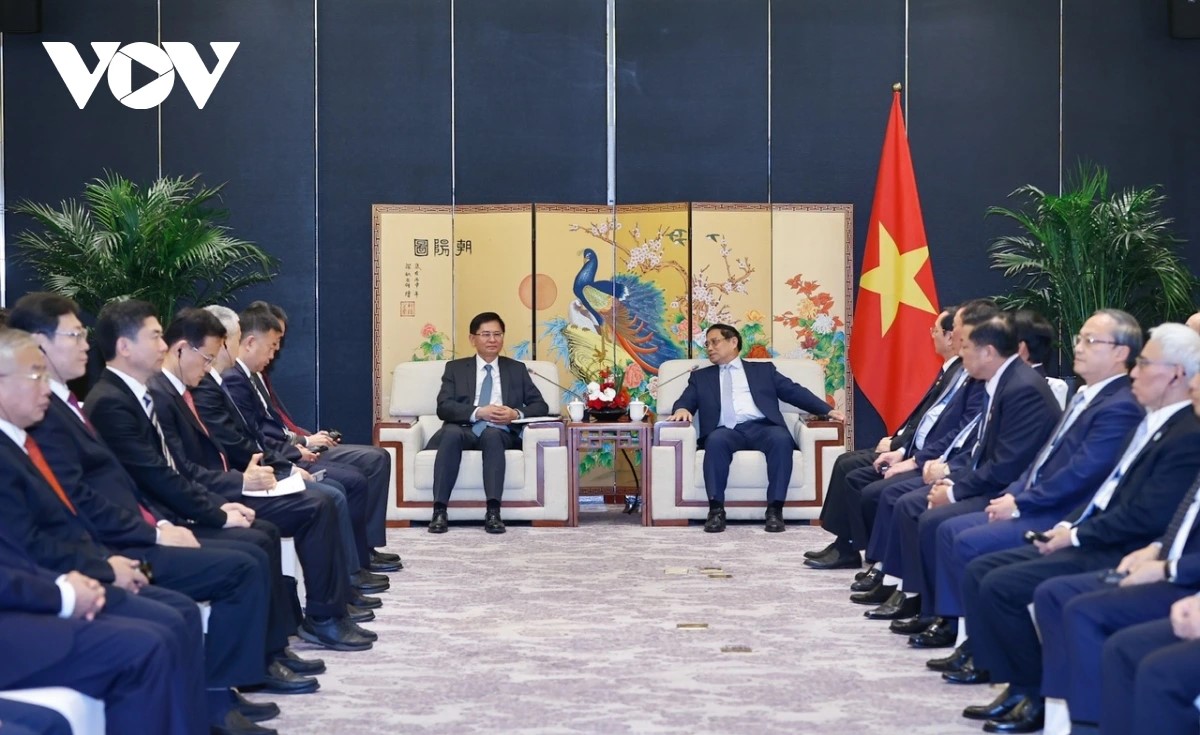 越南政府总理范明政会见柬埔寨首相洪玛奈。