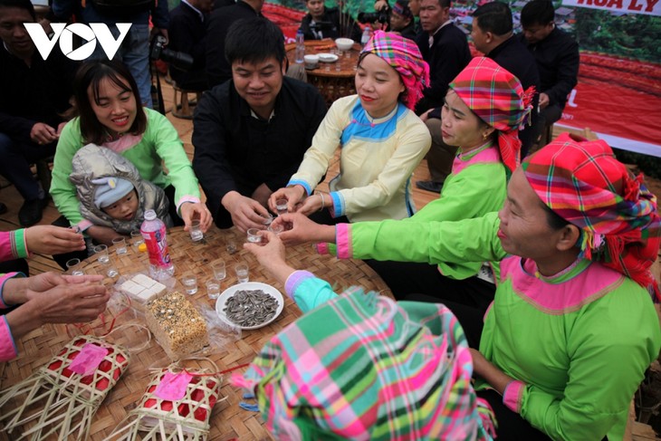 新娘家代表向媒人发出挑战,请她们饮下一杯杯酒,代表祈求吉祥幸福、结亲。