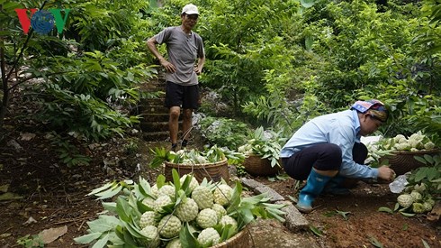 说起采用范欣幸传授的番荔枝人工授粉方法带来的效果,山萝省梅山县哈罗镇农民阮文达的脸上露出了高兴的神色。阮文达家共有两公顷果园,多年来主要种植番荔枝。以前采用自然耕作方式,每公顷土地出产三至五吨番荔枝果。7、8年前,他与其他番荔枝农户采用了新的授粉方法,即每年农历腊月砍树,两个月后番荔枝树发芽和开花就开始授粉。由于主动控制了授粉环节,所以能决定番荔枝果数量,收割活动也能按照农民的意愿进行。从此,番荔枝产量比往年高六至七倍,每公顷土地平均出产15至17吨番荔枝果。番荔枝及其他水果给阮文达一家年均带来三亿越盾收入。