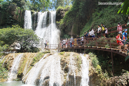来到美丽的木州高原,游客可以欣赏许多大自然美景,游览雄伟的帕良(Pha Luông)峰、广阔的心形茶园、蜿蜒的李子山谷、缤纷多彩的花街。肚兜(Dải yếm)瀑布是木州最受欢迎的旅游景点之一。除了呼吸清新凉爽的空气,游客还可以体验越南首个使用5D技术的爱情玻璃桥。在桥上,游客可以充分体验这个神奇的空间,观赏木州高原全景。