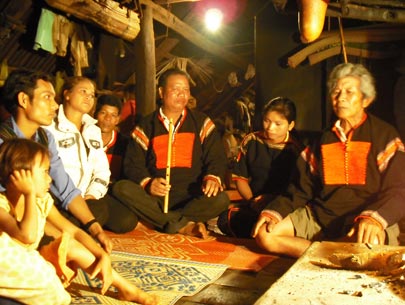 | 老艺人在给村民说唱史诗 |
