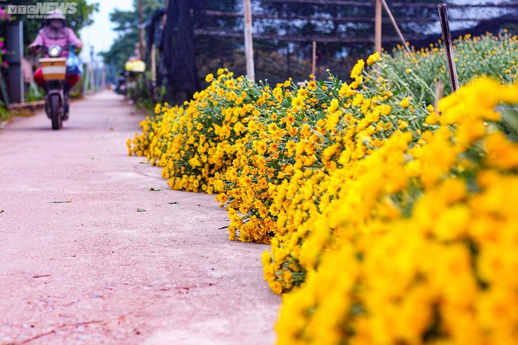 为了让观赏花在春节期间绽放,花农都采用塑料棚种植或夜晚灯照等技术。图片来源:VTC。 |