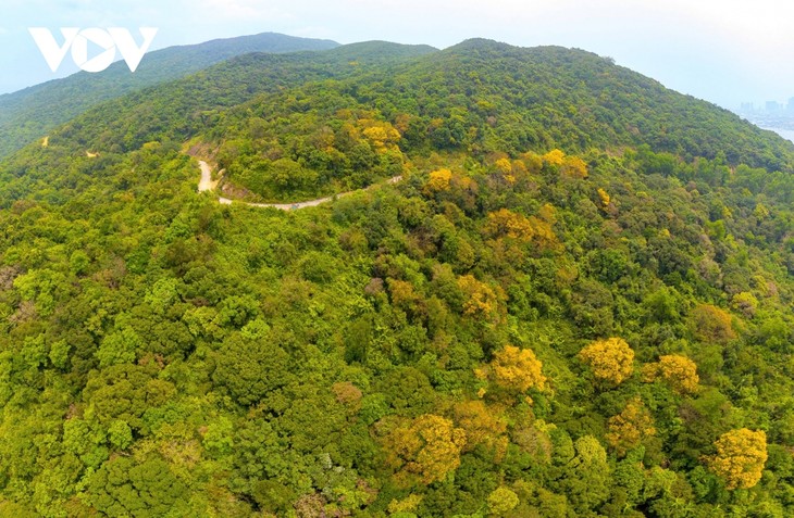 三月末四月初,岘港市山茶半岛的森林里,黄花盾柱木竞相绽放,把一片森林染成了金色。 |