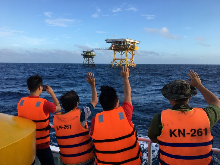 在4、5、6级强风中经过12天(2019年12月29日至2020年1月9日)的海上航行,从巴地头顿省头顿市龙山港出发的KN 261号船完成了运载记者代表团看望2020庚子春节期间在海上执行任务的DK1高脚屋干部、战士并赠送年礼的行程。