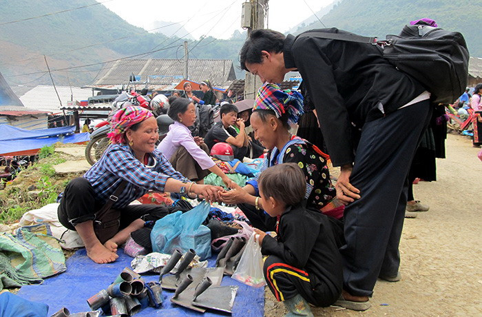 当地居民在集市上购买手工制作的农具。图片来源:奠边府报 |