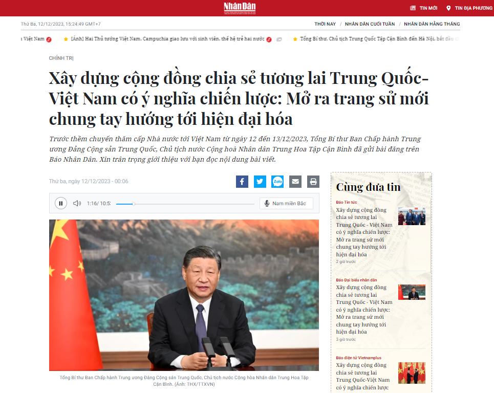 习近平强调,越中友好情谊是以人民为基础,而青年一代则是未来。他强调,两国人民之间的交流合作机制,包括文化交流和两国边境地区交流,有助于增进双方感情,在瞬息万变的世界中共享未来。