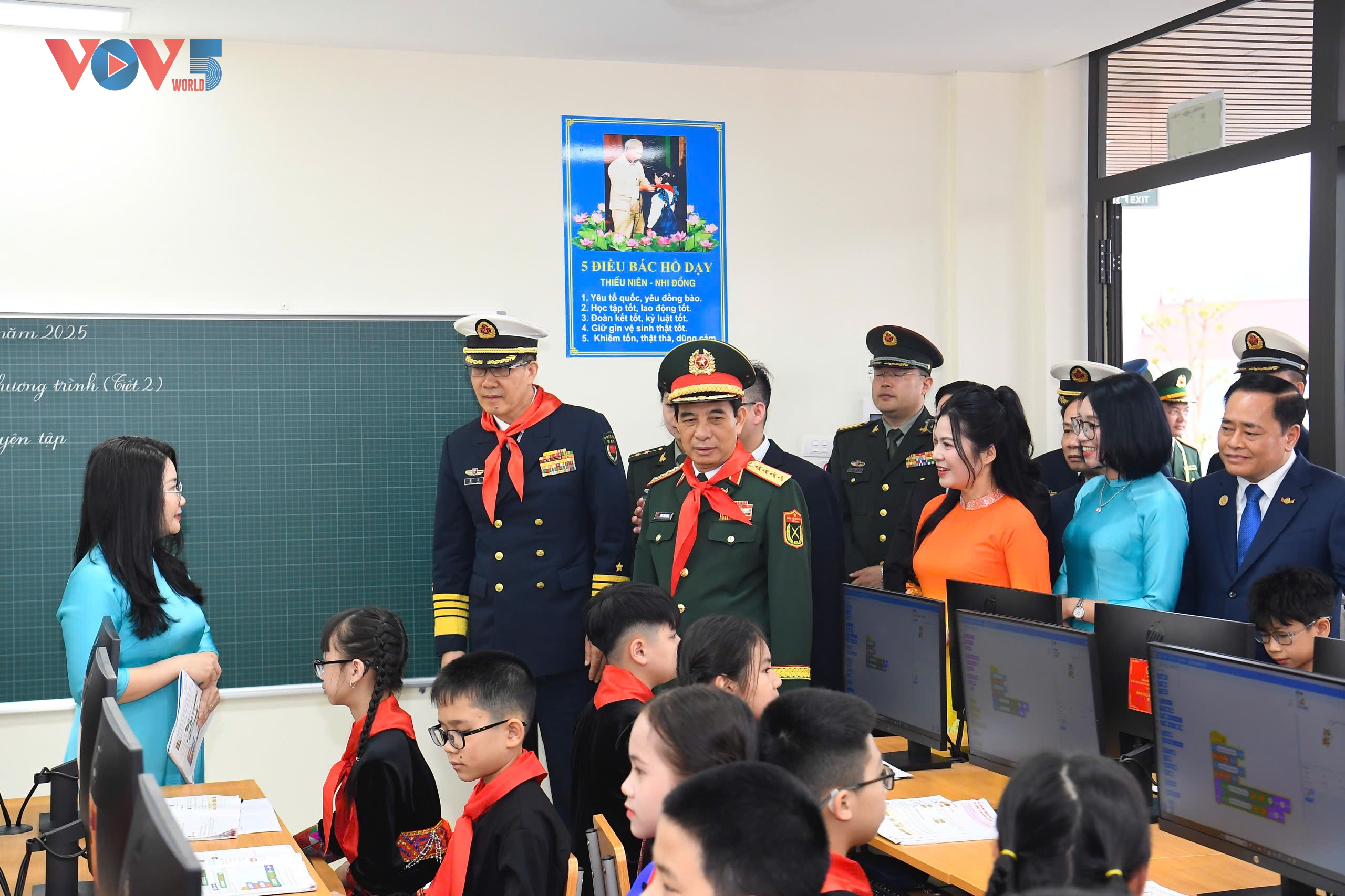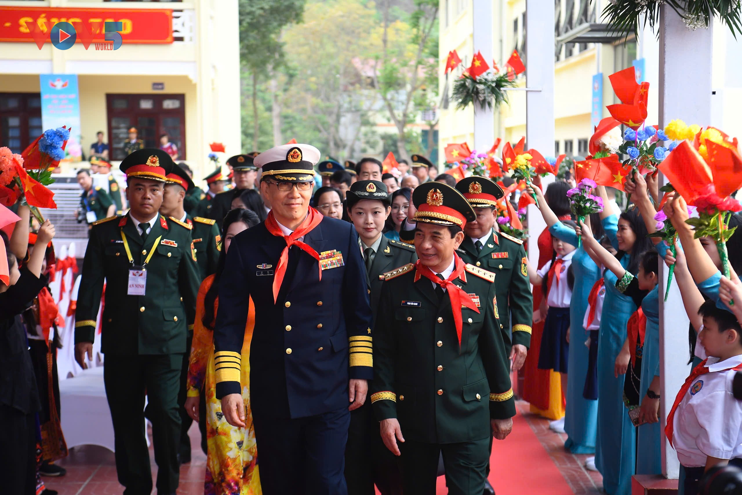 当天上午,两国国防部代表团还参观了同登小学,出席学校多功能楼的剪彩仪式。广西壮族自治区人民政府副主席廖品琥在该校出席相关活动时致辞:“展望未来,广西将从地方层面,坚决贯彻落实中越两国领导人达成的重要共识。为此,我们诚挚地邀请同登中小学等更多越南老师和小朋友到广西开展师生互访、课程共享、文化体验等活动,让更多的孩子成为中越友好的‘小使者’,共同为两国各自的社会主义事业和构建具有战略意义的中越命运共同体凝聚青春力量。”